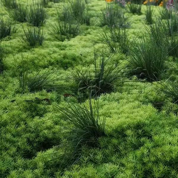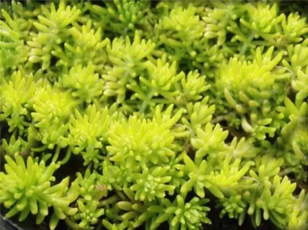 金叶佛甲草为景天科植物,为佛甲草一变种。耐旱性极强,植株低矮,匍匐地面生长,高10至20厘米,花期多在5至6月,开金黄色花。叶片金黄色,枝叶生长茂盛,覆盖地面能力强,速度快,其繁殖特别容易。多选用扦插,落地即生根,几乎能扦插成活,每株一年能繁殖数百株。