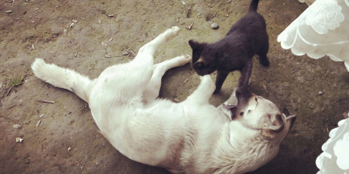 在这里猫和狗成了玩伴,时常在一起疯闹!