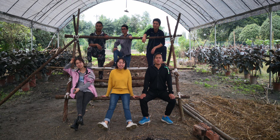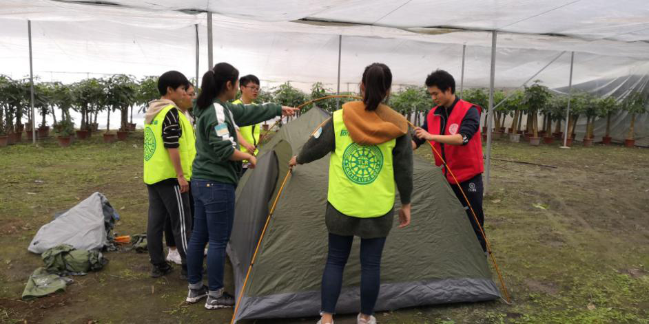 同路人的志愿者们一到苗圃就开始了忙碌的工作—搭建帐篷